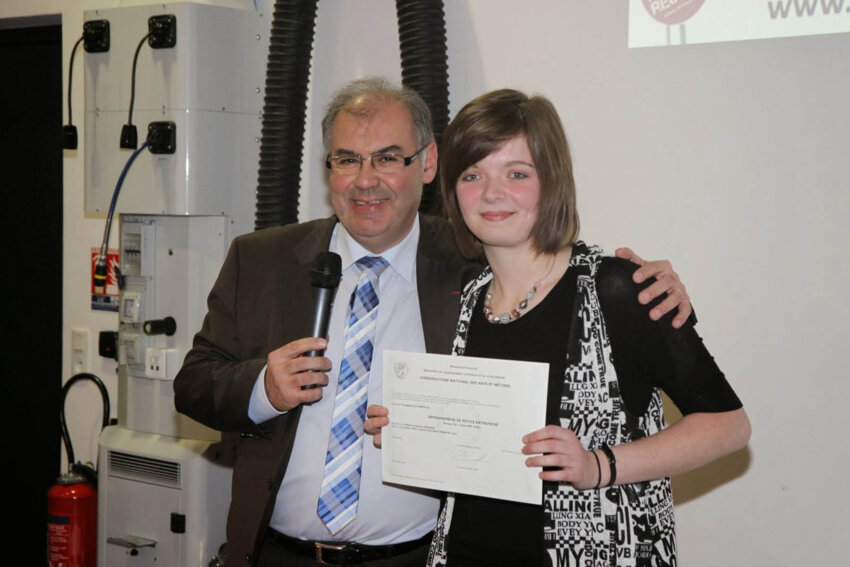 Gabriel Hollander, 1er vice-président de la Chambre de métiers et de l’artisanat (section Pas-de-Calais), remet un titre entrepreneur de la petite entreprise.