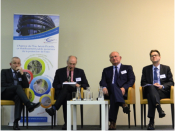 Depuis les années 2000 et la directive-cadre sur l’eau adoptée par l’Union européenne, l’objectif pour tous les États membres est de veiller à la qualité de l’eau sur leur territoire. Pour cela un plan d’action très spécifique est mis en place pour une durée de six ans : le Schéma directeur d’aménagement et de gestion des eaux (SDAGE). Les représentants de l’Agence de l’eau et de la Direction régionale de l’environnement, de l’aménagement et du logement (DREAL) ont profité de l’occasion pour présenter également leur Plan de gestion des risques d’inondation (PGRI) ainsi que le programme de mesures du Plan d’action pour le milieu marin (PAMM), qui contribuent eux aussi, grâce à une démarche globale et cohérente, à améliorer la gestion mais aussi la qualité de l’eau. Le bassin Artois-Picardie s’étend sur 20 000 km, compte 8 000 km de cours d’eau et 270 km de côtes. Chaque année, 310 millions de m3 d’eau potable – 96% provient de l’eau souterraine – sont produits par an pour les 4,7 millions d’habitants, dont 75% sont des urbains. Sur le bassin, le coût moyen de l’eau par mètre cube est de 4,40 euros.