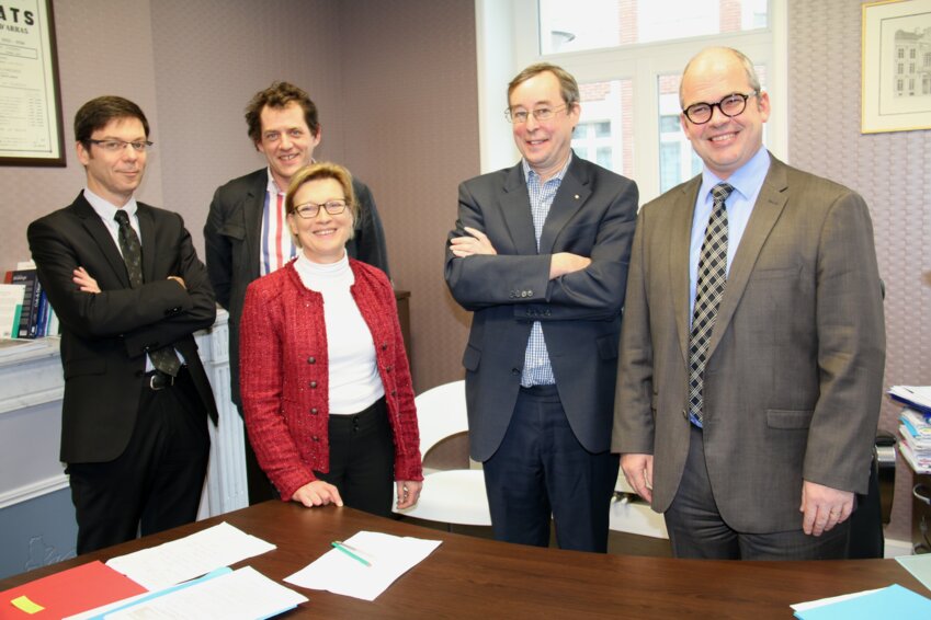 De gauche à droite : Mes Antoine le Gentil, Etienne Prudhomme, Blandine Prévot-Linquercq, Antoine Vaast, vice-bâtonnier, et Philippe Meillier, bâtonnier.