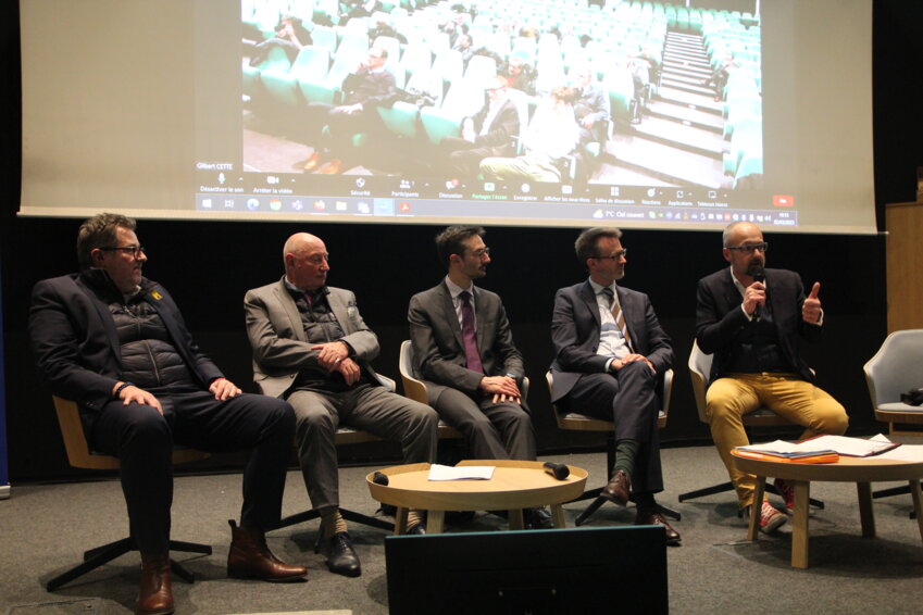 Devant un amphithéâtre pourtant bien vide pour l'occasion, des chefs d'entreprises témoignent. « Cela devient un très gros secteur de dépense », insiste Denis Ranvel, directeur régional Ouest et Nord chez Léon Grosse. Malgré ses 800 M€ de chiffre d'affaires l'entreprise du bâtiment est naturellement exposée. « Nous consommons 10 GW par an environ. Sur certains chantiers on a vu passer la facture de 4 000 à 20 000 €. Et nous sommes passés d'un tarif de 60 € / MWh à 295 € / MWh. »