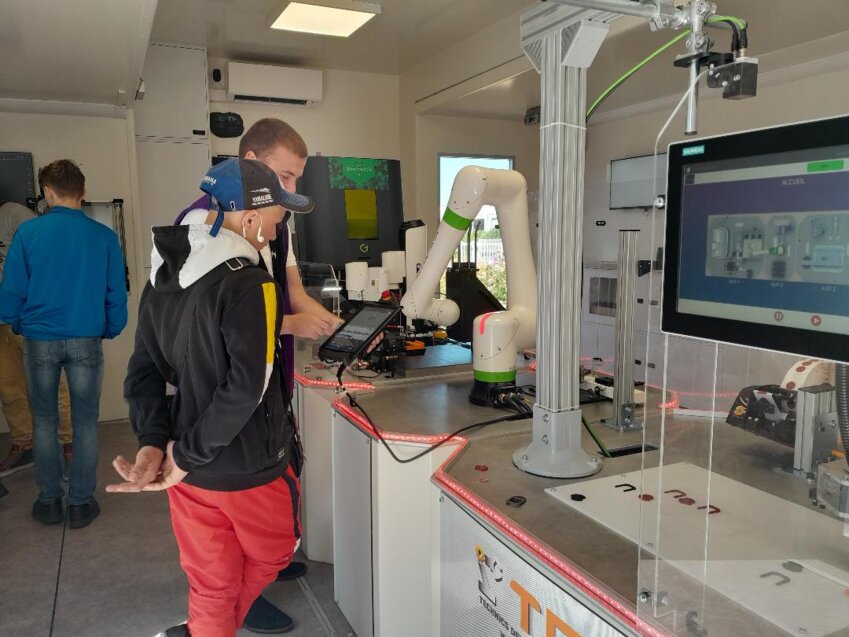 Devant l’urgence, toutes les occasions sont bonnes pour faire la promotion des métiers de la métallurgie auprès des jeunes et des demandeurs d’emploi. Le centième anniversaire de sa naissance que l’UIMM Flandre maritime fête cette année en est une. Durant les festivités qui se sont déroulées du 22 au 24 juin derniers, l’organisation patronale a accueilli devant ses locaux dunkerquois la Fabrique 4.0, une ligne de production mobile complètement automatisée, installée dans la remorque d’un 38 tonnes, conçue et financée par l’UIMM Hauts-de-France. «Quand les jeunes la découvrent, leur première réaction diffère beaucoup de l’image qu’ils ont d’une ligne de production dans une usine», commente l’animateur de la Fabrique 4.0, non sans un brin de fierté.