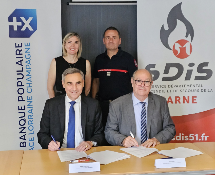 Après avoir ratifié des conventions similaires entre la BPALC et les SDIS 54, 57 et 68 en juin dernier, la BPALC vient d’ajouter deux nouvelles signatures pour formaliser l'engagement de la BPALC pour les sapeurs-pompiers volontaires des SDIS 51 et SDIS 55 et faciliter le volontariat de ses collaborateurs. La signature a eu lieu dans les locaux du SDIS 55 à Bar-le-Duc, en présence d’Hubert de Marcellus, directeur général adjoint de la BPALC et Sylvain Denoyelle, président du SDIS 55. Cette convention est la déclinaison en région de celle signée précédemment entre la Fédération Nationale des Banques Populaires et le ministère de l’Intérieur et des Outre-Mer. Elle permettra désormais au collaborateur volontaire de bénéficier, chaque année, d’un maximum de 10 jours ouvrés avec maintien de rémunération. Ce nouvel accord vise aussi à concilier les activités professionnelles des volontaires avec leurs activités de SPV.