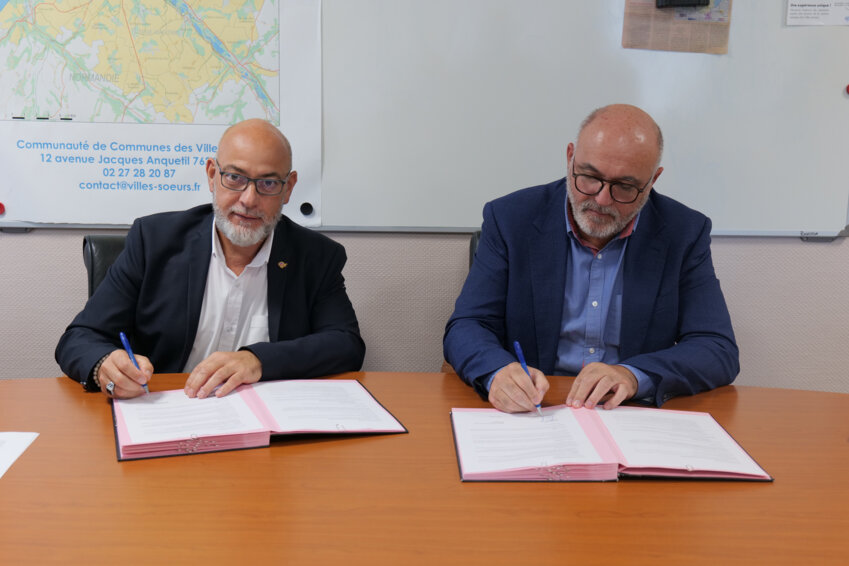 Mercredi 4 octobre, un accord de partenariat a été signé entre Jean-Christophe Lemaire, président de l'Association PME Développement, et Eddie Facque, président de la communauté de Communes Villes Sœurs, dans le but de soutenir le développement économique local. Ce partenariat de trois ans devrait permettre aux porteurs de projets du territoire d'être davantage informés de l'existence de l'association et d'être orientés vers la CCI Rouen Métropole.