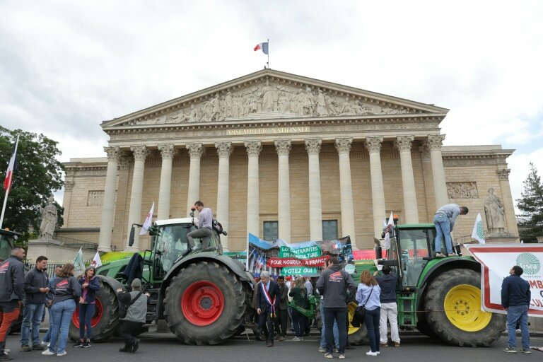 La FNSEA a garé une dizaine de tracteurs devant l'Assemblée nationale lundi afin de faire pression sur les députés qui doivent se pencher sur la loi Duplomb, "essentielle pour qu'enfin on retrouve notre capacité à produire en France", selon le secrétaire général du premier syndicat agricole français.