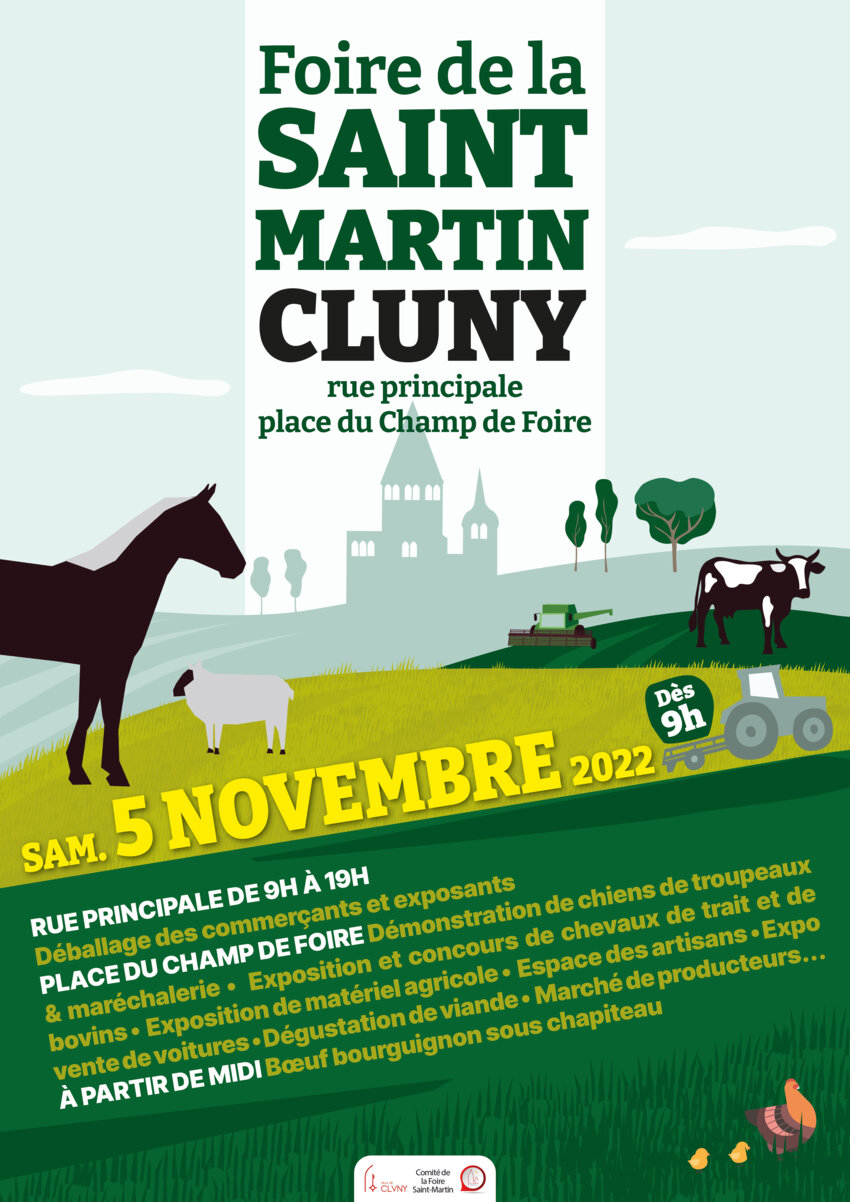 Le comité d'organisation de l'événement se compose cette année de Quentin Baudin, Président du comité de la Foire de la Saint-Martin, Félicien Terrier, Trésorier et Charlotte Janine, ancienne secrétaire. La manifestation se tiendra tout d'abord à la rue principale, les Clunysois pourront alors participer au déballage des commerçants et des exposants.