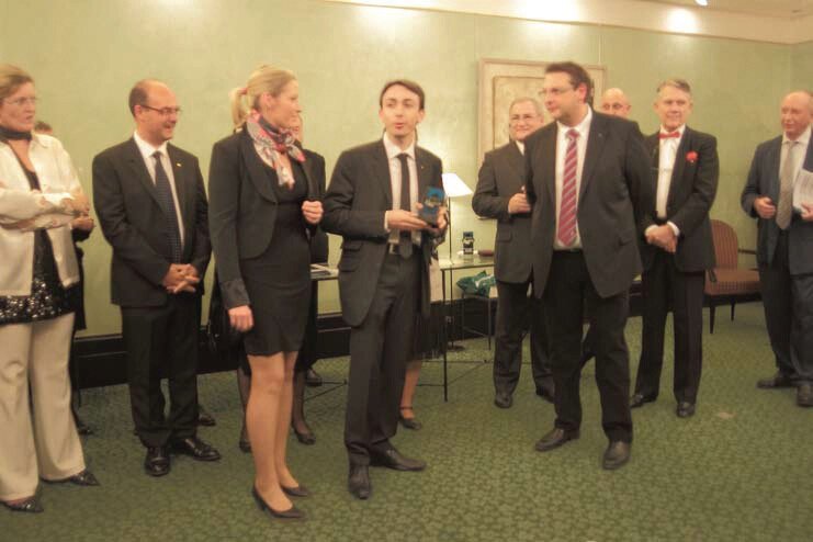 La présidente Carole Lobry (au premier plan) et Benoît Roussel reçoivent le trophée “meilleure action régionale”.