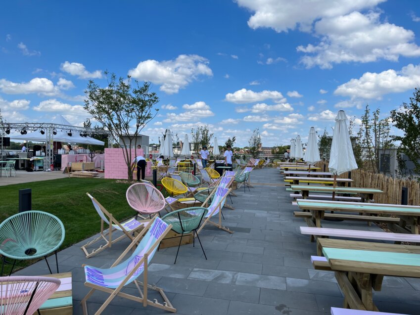 Un espace de 1 300 m² sera dédié au Heavy Toys & Slash Machine de Brique House. L’offre est une extension de celle déjà présente au rez-de-chaussée du bâtiment. Dix becs pression sont disponibles et des transats sont disposés autour du bar. Par ailleurs, les équipes de Growsters, en partenariat avec Leroy Merlin, vont mettre à disposition des parcelles. Elles pourront être réservées en ligne pour cultiver ses propres fruits et légumes avec une vue imprenable sur Croix. Deux maraîchers animateurs seront présents sur le site. Les entreprises qui le souhaiteront pourront réserver ces parcelles pour des animations, ateliers ou séminaires.