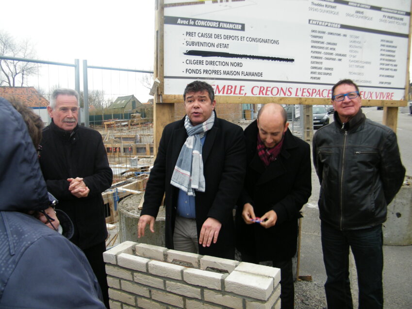 Pose de la première pierre de 18 nouveaux logements à Ghyvelde, le 18 mars dernier.