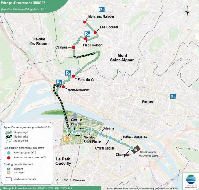 Selon Nicolas Mayer-Rossignol, Président de la Métropole Rouen Normandie, Cyrille Moreau, Vice-Président en charge des transports, des mobilités d’avenir et des modes actifs de déplacement, Jean-Michel Bérégovoy, Adjoint au maire en charge de la transition écologique, Frédéric Marchand, Adjoint au Maire en charge de la Rive gauche et de l’ile Lacroix, Valentin Rasse-Lambrecq, Conseiller municipal délégué en charge des quartiers Ouest : « La T5 va permettre de relier Mont-Saint-Aignan, depuis Mont aux Malades en passant par le campus, l’arrêt Kindarena (desserte du quartier Luciline) jusqu’à Saint-Sever-Nouvelle-Gare, en desservant la rive gauche, notamment le quartier Flaubert et la station Joffre-Mutualité. Les multiples concertations qui se poursuivent encore ont permis d’adopter un tracé cohérent et utile pour les usagers. Lignes Teor, bus, Métro, Lovélo, covoiturage : soyons fiers de nos mobilités alternatives et plus respectueuses de l’environnement ! »