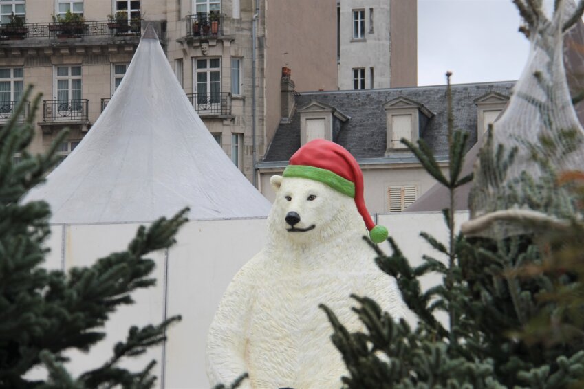 Un ours blanc sur la place Simone Veil à Nancy en face de la gare, un effet du réchauffement climatique ?