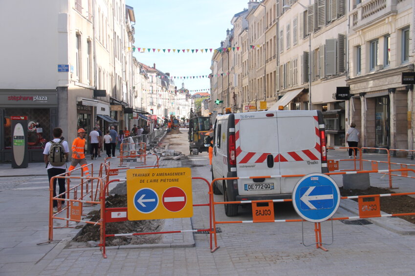 Les chantiers de dépavement dans le cadre de la piétonnisation de Nancy continuent comme ici rue des Dominicains. L’artère commerçante chic sera fermée à la circulation jusqu’au 20 octobre. La patience est mère de toutes les vertus…