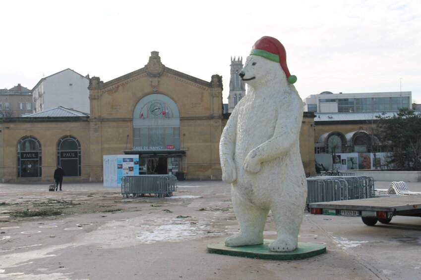 L’ours polaire sur la place Simone Veil de Nancy, une des nombreuses décorations de la période des fêtes, a joué les prolongations la semaine dernière. Si cela n’est pas un signe...