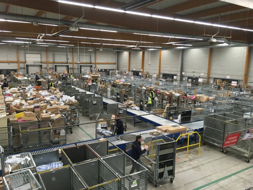 La structure, ouverte de 3 h 30 à 23 h 30, réceptionne les colis expédiés depuis la plate-forme industrielle de Douvrin (Pas-de-Calais). Un premier tri est effectué avant qu’une équipe ne dispatche les paquets selon les adresses des destinataires. Placés sur un tapis roulant, pour limiter les mauvaises postures et le port des charges lourdes, les colis défilent devant un premier opérateur chargé de les aligner, permettant à ses coéquipiers de lire plus facilement les adresses.