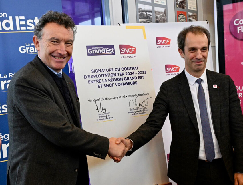 Aboutir à un équilibre financier exigeant pour assurer un service de haute qualité. Objectifs affichés du nouveau contrat TER 2024-2033 signé par Franck Leroy, le président de la Région Grand Est et Christophe Fanichet, président directeur général de SNCF Voyageurs le 22 décembre dernier.