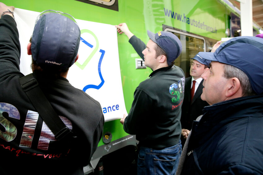 Le 1er février, à l’usine Bombardier de Crespin, près de Valenciennes, où l’on conçoit, assemble et met en service des matériels ferroviaires, la Région avait organisé une opération de communication : le pelliculage (ou lettrage par application d’autocollants) d’un des 245 trains qui vont circuler avec le nouveau logo des Hauts-de-France d’ici à 2021. L’opération s’est faite en présence de Xavier Bertrand et des médias. La cérémonie est survenue dans une période où beaucoup de questions se posent sur l’avenir de l’industrie ferroviaire, un avenir lié aux commandes publiques et aux délocalisations de fabrications. Pour sa part, précise-t-on, la Région a commandé une version «extra longue» au constructeur régional Bombardier. «XL», cela veut dire en l’occurrence 135 mètres de long, 10 voitures, 721 places assises sur les axes à forte fréquentation… Ces rames seront équipées d’espaces pour les vélos, de tables et de prises électriques pour les appareils mobiles. Les sept rames XL commandées par le Conseil régional devraient circuler progressivement sur les axes les plus fréquentés de la région : Paris-Creil-Amiens et Paris-Creil-Saint-Quentin.