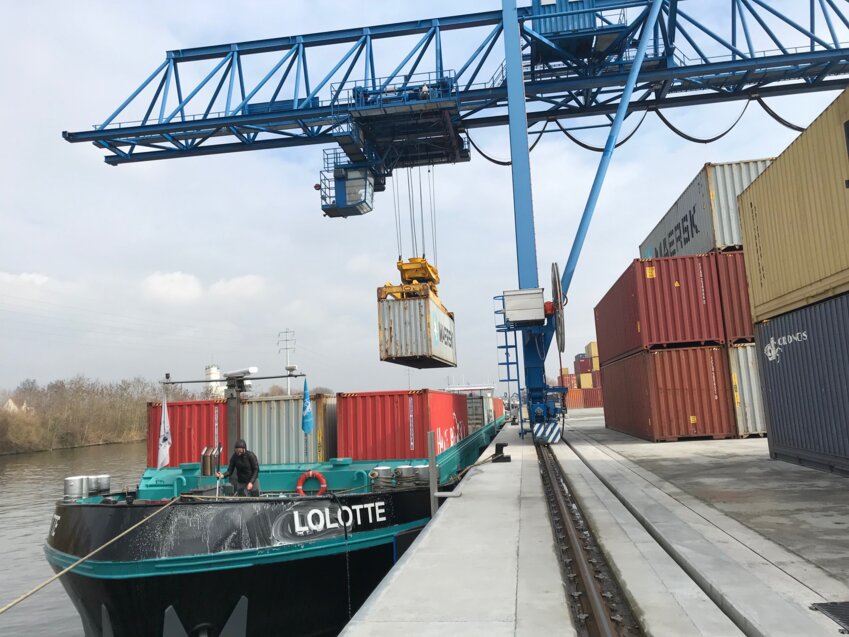 Il est 7 h du matin et Lolotte s’arrête devant le port à conteneurs de Saint-Saulve – Bruay-sur-l’Escaut. Un immense portique dirige sa gracile silhouette bleue vers la barge et commence à retirer ses conteneurs. Quatre heures plus tard, Lolotte reprend lentement son cours sur l’Escaut, de nouveau chargée. «On ne fait pas de voyages à vide ici», commente Gilbert Bredel, directeur général de Contargo France.