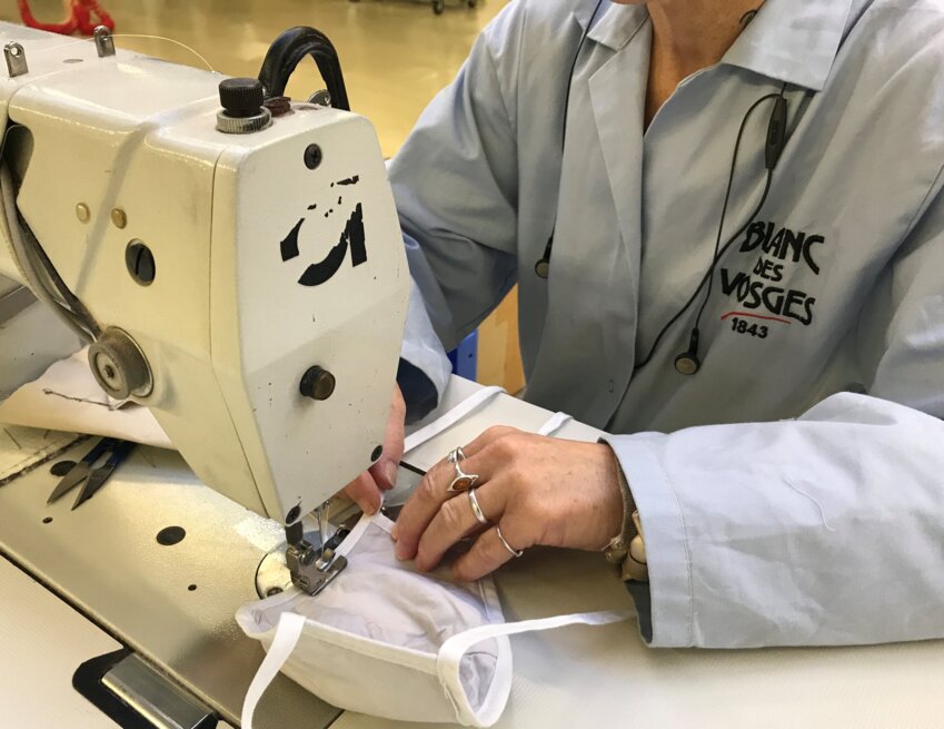 Installée à Gérardmer depuis 1843, Blanc des Vosges est une entreprise familiale fabriquant un linge de lit haut de gamme 100 % made in France. Confrontée à une situation sans précédent avec la propagation de la pandémie de Covid-19, la structure a pris la décision de se reconvertir provisoirement et de fabriquer des masques anti-projections en collaboration avec la préfecture des Vosges. Une action qui s’inscrit pleinement dans la mobilisation initiée par des entreprises de la filière textile vosgienne. Concrètement, Jean-François Birac, PDG de Blanc des Vosges, a mis à profit son stock de matières premières, son personnel mais aussi son site de production pour concevoir des masques réutilisables en tissu lavable. Ces articles fabriqués sur la base du cahier des charges élaboré par le CHU de Grenoble sont destinés aux professionnels de la région, notamment ceux des Ehpad, des crèches et de l’industrie agroalimentaire. Précisons que la totalité de la production est instantanément envoyée aux établissements validés par la préfecture des Vosges.