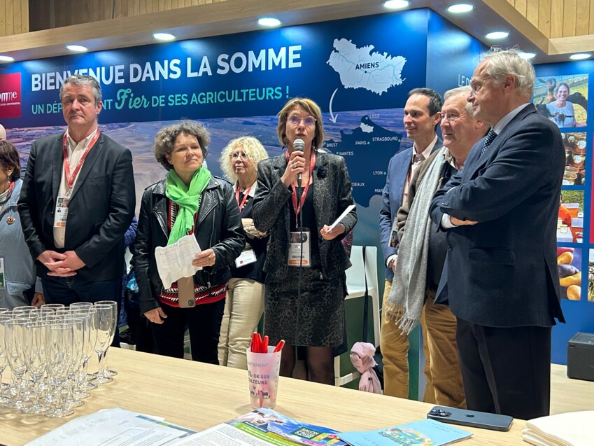 En 2024, la participation de la Somme au Salon international de l’Agriculture (SIA) fut couronnée de succès. C’est pourquoi, pour cette 61e édition, le conseil départemental de la Somme occupait, une nouvelle fois, un stand dans le hall 3 du Parc des expositions de Paris. «Nous nous devions de réitérer l’expérience. La Somme est le grenier de la France, avec une superficie totale de 620 800 hectares valorisée par 5 070 agriculteurs, l’agriculture occupe les trois-quarts de la surface départementale», rappelle Christelle Hiver, présidente du conseil départemental de la Somme, au moment de l’inauguration du stand le 25 février.