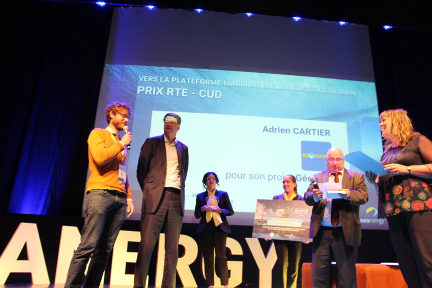 Lors du salon international Seanergy, les noms des cinq lauréats ont été dévoilés. Le Grand Prix RTE-CUD a été remis à la start-up dunkerquoise Géodunes, créée par Adrien Cartier, dont le projet «Géocéan» a convaincu le jury. Géocéan se propose, grâce à la pose de capteurs de monitoring du milieu marin sur la plateforme électrique, de mesurer en temps réel les courants marins et la houle afin de prévoir les risques de submersion. Un projet qui s’inscrit complètement dans la problématique du changement climatique et l’adaptation du territoire dunkerquois à ce changement, et qui plus est «solide, étayé, pertinent, bien ancré dans son territoire et qui offre des potentialités de développement ultérieures», a apprécié le jury. Ce projet se voit doté de 20 000 € et d’une incubation à Dunkerque pour aider à sa concrétisation. Quatre autres lauréats ont été récompensés. Le prix RTE du Meilleur Projet non numérique a ainsi été décerné aux entreprises françaises Sofresid, PersEE et McPhy pour leur projet «Hybsea», qui consiste à développer un prototype pour la production d’hydrogène vert en s’appuyant sur la plateforme électrique en mer. Ces trois entreprises se voient récompensées par une étude de faisabilité du projet financée par RTE. Enfin, l’entreprise de Villeneuve-d’Ascq Point Triiiple a reçu un prix spécial «Art et Energie» pour un projet très original et complètement hors cadre : «Ventalion». Celui-ci ambitionne de transformer des données physiques du vent enregistrées sur la plateforme en mer en une symphonie musicale qui serait diffusée en un lieu à définir à Dunkerque. Par ailleurs, deux étudiants de l’école d’ingénieurs ISEP à Paris, Timothé Bonnel et Thomas Gheorghin, ont vu leur projet «Cleanwhale» de collecte de déchets par drones sous-marins remarqué. De même que deux étudiants de l’ESME Sudria, Geoffrey Le Grin et Louis Stephan, pour leur projet d’algoculture pour une production d’algues à usage alimentaire et pharmaceutique.