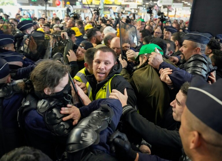Le contexte de grande colère des agriculteurs laissait présager une visite compliquée samedi pour le président. Mais de là à imaginer des forces de l'ordre casquées et boucliers en main tentant de contenir des agriculteurs en colère, jamais.