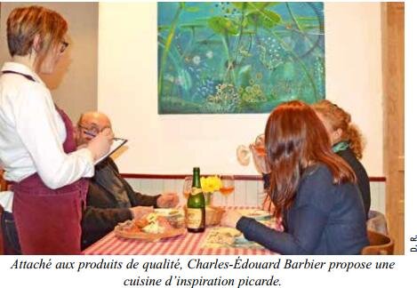Attaché aux produits de qualité, Charles-Édouard Barbier propose une cuisine d’inspiration picarde. Il privilégie les circuits d’approvisionnement courts (viandes et légumes locaux), avec une majorité de produits frais (75% à 85%). De fait, « 95% des recettes que l’on offre sont picardes et faites maison, avec des produits tels que la ficelle picarde, la terrine de campagne, le foie gras, ou issus de cultures locales (escargots picards, cidre ou fromage blanc de ferme) », souligne le restaurateur. La carte de l’auberge Les Tilleuls évolue quatre à cinq fois par an, au rythme des saisons : elle est raccourcie en période creuse, entre juillet et août. Cette cuisine du terroir a permis au restaurant d’être gratifié, il y a sept ans, du réseau-label Bistrot de pays. « Le réseau de l’Oise est dynamique, il favorise l’échange de bonnes pratiques, on sent qu’on n’est pas tout seul », précise le restaurateur. Cette distinction a aussi accru la notoriété de l’établissement : « Nos valeurs, notre convivialité et notre volonté de recevoir des clients comme des amis sont récompensés. De plus, cela apporte une petite clientèle touristique qui veut découvrir notre gastronomie locale. »