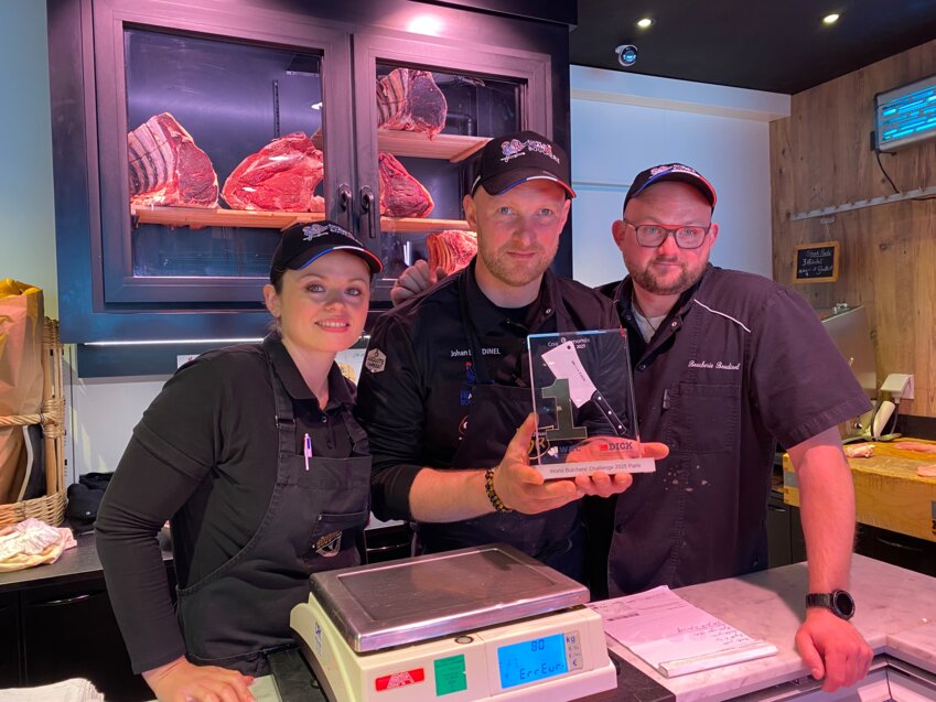 C’est de la satisfaction pour toute l’équipe de France et la filière. C’était une formidable aventure. Nous étions sept dans l’équipe. J’étais remplaçant, normal car j’étais le petit nouveau. Dans trois ans, je devrais être sélectionné. J’ai aimé le travail en équipe, les échanges d’idées, le partage. L’un apporte un ingrédient, une technique qui fait que… J’ai préparé cette compétition durant un an et demi. Les entrainements se déroulaient tous les quinze jours. Il fallait que je connaisse tous les postes de travail. Les deux derniers mois, c’était intense. Je suis installé dans un village de 825 habitants et j’étais aux côtés de bouchers qui travaillent dans de grandes villes. En France, nous nous distinguons par la maitrise des outils et des gestes. La boucherie est un art. Cela montre que c’est un métier qui évolue dans la façon de faire, dans la présentation des viandes et des recettes. Aujourd’hui, les gens achètent avec les yeux. Nous sommes en quête d’innovation, de nouvelles techniques de cuisson. La cuisson lente et à basse température apporte de la tendreté et du gout. Les concours, j’aime cela. J’ai été meilleur apprenti de France en 2003 et troisième européen en 2004. J’ai reçu des centaines de messages de félicitations. Le trophée est dans le magasin.