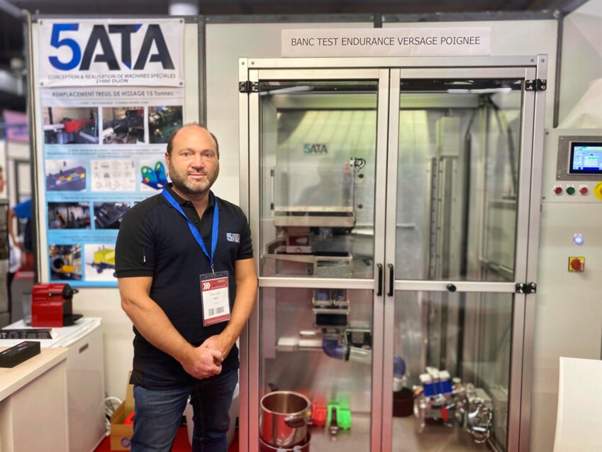 Pour réaliser ses machines, le bureau d’études collabore avec une quinzaine d’autres PME dijonnaises pour certaines pièces spécialisées, notamment l’outilleur MGO. Le niveau de spécialisation de certaines machines conçues par 5ATA peut étonner. L’entreprise a dernièrement réalisé une machine pour l’industriel SEB, afin de tester une poignée amovible sur ses poêles et casseroles : l’automate saisit l’ustensile, le remplit de billes de métal et le soulève, puis verse les billes qui repartent dans leur réservoir d’origine, avant de renouveler cette opération des milliers de fois. « Nous sommes susceptibles de réaliser tout type de machine très spécialisée qui n’existe pas dans le commerce », résume Simon Roy. L’entreprise peut également réaliser le retrofitage de machines existantes.