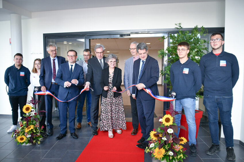 Le coupé de ruban effectué ! Le 30 juin, le campus des industries technologiques de Nancy-Maxéville sur le site Saint-Jacques a été officiellement inauguré en présence de Jean Rottner, le président de la région Grand Est, d’Arnaud Cochet, le préfet de Meurthe-et-Moselle, de Christophe Choserot, le maire de Maxéville, de Marc Vigneron, le président du pôle formation UIMM Lorraine et d’Hervé Bauduin, le président de l’UIMM Lorraine. «Avec 735 apprentis formés chaque année sur le site, il devenait trop petit notamment pour accueillir les équipements industriels de pointe», explique Fanny Feller, la directrice générale du pôle formation UIMM Lorraine. «Il est aujourd’hui doté d’un pôle productique, d’un pôle chaudronnerie et également d’un amphithéâtre de 200 places. Nous avons souhaité une architecture sobre et soignée valorisant l’unité du site.» Le site affiche aujourd’hui les quelque 6 200 m². 9 M€ ont été nécessaires financés par l’État (2,8 M€), la Région Grand Est (3,2 M€) et par autofinancement du pôle formation UIMM Lorraine (3,1 M€).