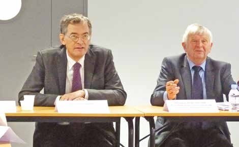 Rémi Pauvros (à g.), député et grand architecte du CSNE, avec le président André Salomé (à d.), président de la communauté de communes du Pays Neslois, tous deux grands défenseurs du canal à grand gabarit.