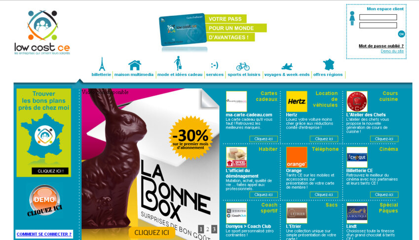 Un réseau national. Présent dans toutes les régions de France, Low Cost CE propose un réseau en constante évolution, de l’ordre de 400 prestataires à l’échelle nationale. «Les commerces et services partenaires sont identifiables par l’intermédiaire du sticker qu’ils affichent en vitrine.» Le réseau propose ainsi une large palette de services, allant de la simple place de cinéma à des bons de réduction dans des grandes surfaces, de la billetterie ou encore des bons plans pour la maison et l’habillement.