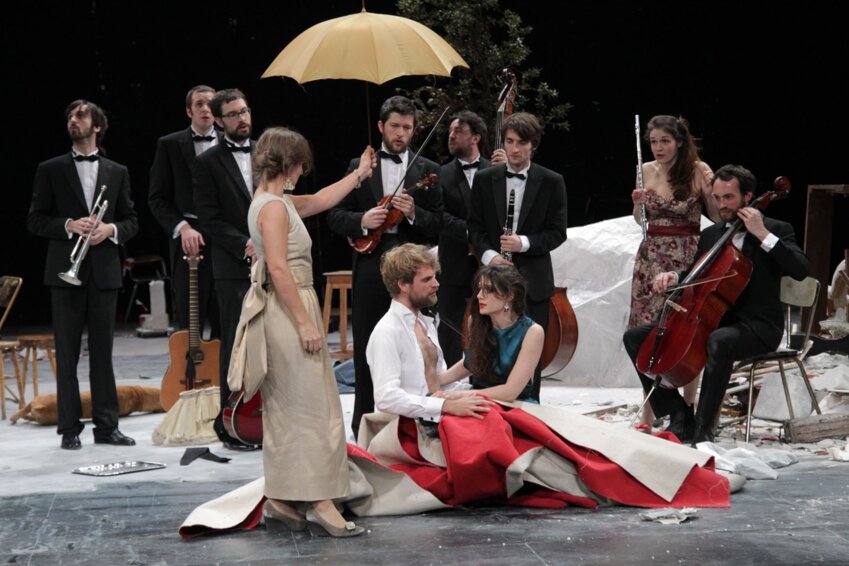 Cette variation jazzy et déjantée de l'œuvre d'Henry Purcell, cosignée Samuel Achache et Jeanne Candel, est l'une des meilleures productions du théâtre musical de ces dernières années. Sur un plateau très art contemporain, où les ruines de Carthage sont figurées par un éboulis de pierres dans un coin, l'histoire de la reine Didon, tombée follement amoureuse du bel Enée, qui l'abandonnera pour aller fonder Rome, prend souvent un tour burlesque.