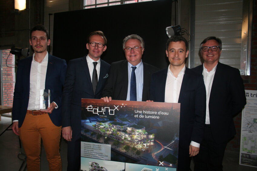 Pascal Boulanger, P-DG du groupe éponyme, aurait dû monter sur scène avec ses collaborateurs en fin de cérémonie, afin de recevoir le grand prix régional attribué cette année à Sigla Neuf, sa société de promotion immobilière. Seulement voilà, la présence surprise de Gérald Darmanin, le ministre de l’Action et des Comptes publics, a quelque peu bousculé l’ordre d’attribution des Pyramides d’argent, soirée orchestrée par Philippe Depasse, président de la FPI Hauts-de-France. Il a remis à l’homme d’affaire lillois sa Pyramide d’argent pour le programme Equinox, signé Boyeldieu-Dehaene architectes et développé sur Tourcoing.