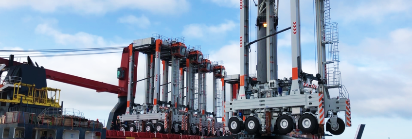 Livrés par le navire néerlandais FW Sun, exploité par l’armement Schulte & Bruns, les 12 cavaliers hybrides arrivent de Finlande au terminal de l’opérateur GMP. D’une hauteur de 16,5 m, chaque équipement pèse 75 tonnes.
