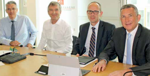 Alain Denizot, président du directoire, Philippe Lamblin, président du conseil d’orientation et de surveillance, François Codet et Daniel Bricka, membres du directoire en charge respectivement du pôle Finances et du pôle Banque de détail.