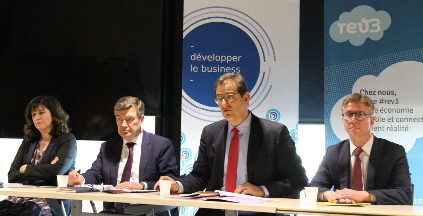 De g. à dr., Sylvie Duchassaing, directrice des études CCIR Hauts-de-France, Philippe Hourdain, président de la CCIR Hauts-de-France, Stéphane Latouche, directeur régional de la Banque de France, et David Brusselle, directeur général CCIR Hauts-de-France.