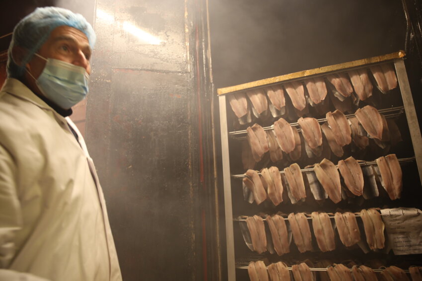 «On veut de la fumée, pas des flammes. On fait nous-même nos copeaux (de chêne) et on surveille l’hydrométrie de l’environnement» détaille le dirigeant. Dans les salles de salages, où l’on y met 3 à 4 tonnes de poissons, les harengs et les haddocks paissent dans les bains ; 3 % de sel pour le hareng doux, 7 % pour les autres, et ça, pendant une année. Pour le saumon, on prend du sel de Guérande. « Soit une dizaine de tonnes de Hareng par an. Le poisson descend de Norvège et il est pêché en ce moment » ponctue Philippe Fromantin. Les 40 coresses sont mitonnées par 3 cheminées et quelques courants d’air.
