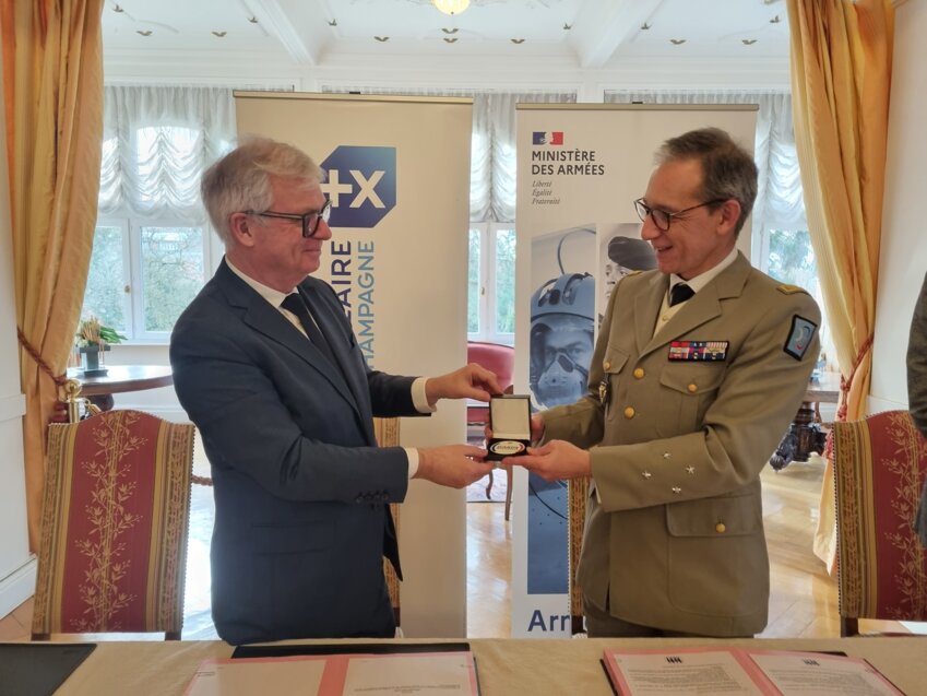 La cérémonie avait bien sûr des accents de solennité. Elle n’a été pas dénuée d’un esprit de convivialité. Le Général de corps d’armée Alexandre d’Andoque de Sériège, gouverneur militaire de Metz, officiel général de la zone de défense et de sécurité Est, commandant de zone Terre Nord-Est, commandant des forces françaises et l’élément civil stationnés en Allemagne, et Dominique Garnier, directeur général de la Banque Populaire Alsace Lorraine Champagne, ont procédé à la signature d’une Convention de soutien à la politique de la Réserve militaire et du Manifeste de soutien et d’engagement «Promilès» contribuant à la cohésion nationale. À leurs côtés, Hubert de Marcelus, DGA Pôle RH et Transformation de la BPALC, et Didier Scherrer, coordinateur zonale des correspondants-réserve-entreprise-défense (CRED).