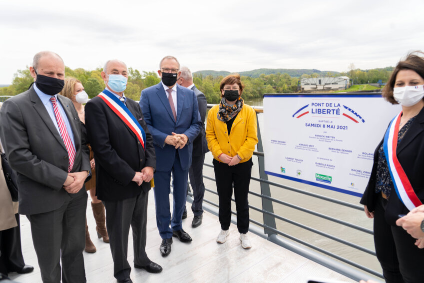 Baptisé le 8 mai 2021 par Patrick Weiten, président du département de la Moselle, le Pont de la Liberté permet à la RD56 de franchir la Moselle et de relier Cattenom et Koenigsmacker. Ce pont autorise le passage de véhicules motorisés, mais encourage également les modes de déplacement doux grâce à deux pistes, dédiées aux cyclistes et aux piétons. Inauguré le 15 octobre 2019, à l’issue d’un chantier d’envergure, l'ouvrage a représenté pour le département un investissement de 10,5 M€.