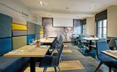 L’atmosphère est chaude, avec un alliage de bois, de tissus et de velours. « Les travaux ont été décidés avec l’agence Elixir Design. Nous voulions une décoration cohérente du rez-de-chaussée à l’étage, qui inspire nos clients. Beaucoup nous demandent où trouver nos chaises, notre papier peint… Les restaurants sont maintenant pré- curseurs de modes en design. Ce qu’il y a dans l’assiette ne suffit plus, le confort et l’ambiance sont la valeur ajoutée d’un établissement. » C’est dans ces travaux perpétuels, renouvelés presque chaque année, que l’équipe du restaurant Le Quai prend plaisir à travailler : « Nos 20 salariés sont motivés par ces changements. Il n’y a pas de lassitude, ni pour les employés, ni pour les clients ». Une cadence qui se retrouve même sur le menu : la carte est renouvelée quatre fois par an. Les plats proposés sont traditionnels et picards. Une cuisine qui a remporté le titre de Maître restaurateur en 2013.