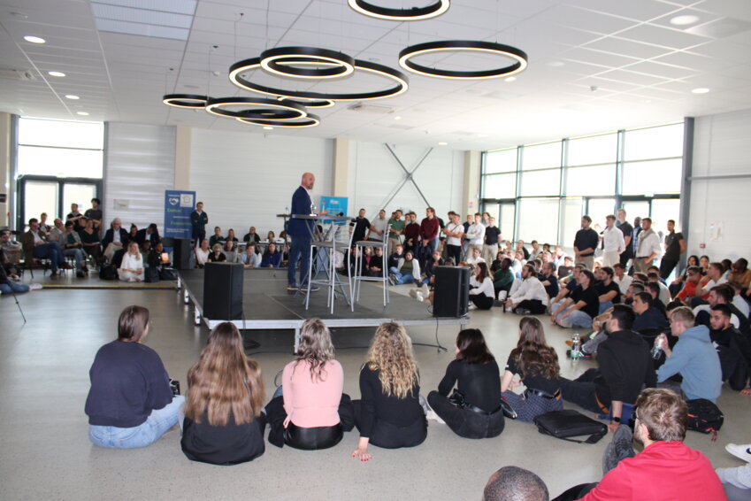 autour de l'estrade, les 200 étudiants (de l'UPJV, d'UniLassalle et