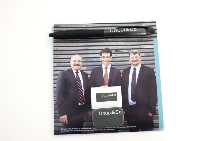 Afin de faire connaître la marque au grand public, stylos, badges et autres objets publicitaires portant le logo "Douai&Co" ont été largement diffusés ces derniers mois.