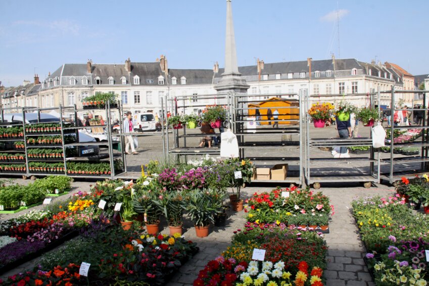 La place octogonale Victor-Hugo d’Arras, ensemble architectural du XVIIIe siècle, est le lieu idéal pour accueillir chaque année le marché aux fleurs du 1er mai.