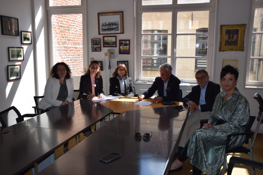 Rendez-vous était donc pris le 12 mai à la Maison de l’avocat de Douai pour la signature de la convention. Respectivement président en exercice et président honoraire, Jean-François Krummenacker et Daniel Mouy représentaient le tribunal de commerce de Douai-Cambrai. Mme le Bâtonnier Hélène Detrez-Cambrai représentait le barreau de Douai et Mme le bâtonnier Cathy Beauchart, le barreau de Cambrai.
