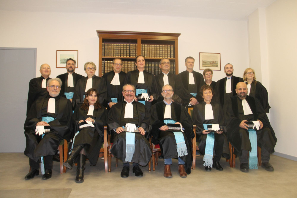 © Emmanuel Varrier. Les juges consulaires valdobriotins viennent d’installer deux nouveaux juges, Cyril Zavattiero et Claude Schoumaker (deuxième et troisième, debout, en partant de la gauche).