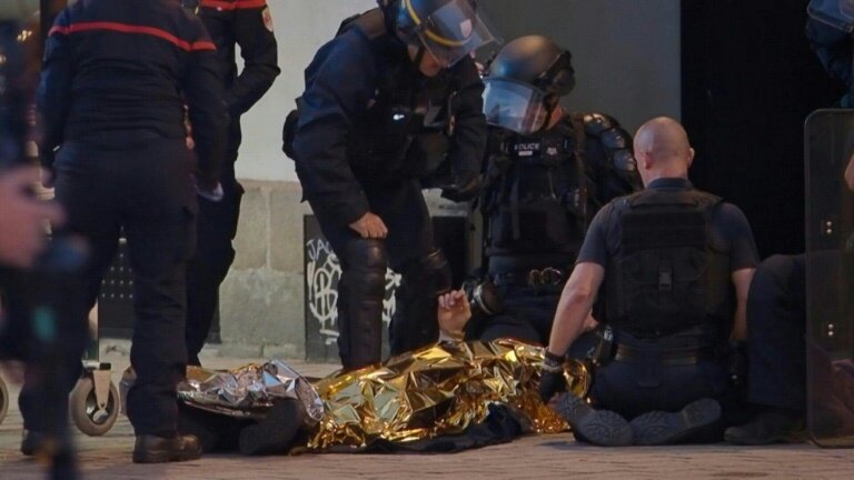 Un policier a été blessé et évacué conscient par les pompiers après l'explosion d'un cocktail Molotov près de lui, selon l'AFP. La préfecture a précisé que le fonctionnaire souffrait de "brûlures" et que trois personnes ont été interpellées.