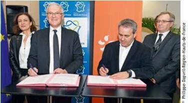 Xavier Bertrand et Jean-Bernard Lévy, Pdg d’EDF, ont signé le 8 mars dernier un partenariat dont l’objectif est de favoriser le développement économique dans les Hauts-de-France en s’appuyant sur le nucléaire. Cet engagement s’articule autour de l’emploi et la formation, avec un accent mis sur « une transition énergétique, innovante et décarbonée du territoire ».