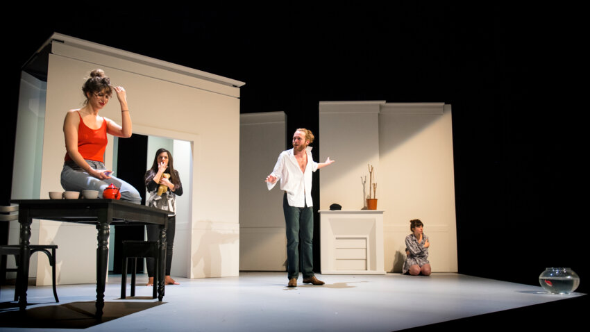 Metteure en scène et comédienne, Nathalie Fillion est aussi dramaturge – elle a écrit une quinzaine de textes pour le théâtre. Sa nouvelle pièce s’ouvre en 2016 alors que Marguerite, Rose et Iris – trois sœurs, intellectuelles précaires –, aménagent au 24 rue Beaunier à Paris, dans l’appartement où vécut Lénine en 1909. Elles sont alors confrontées à des phénomènes étranges. L’appartement est-il hanté ? Ou habité par une autre histoire ?… A moins que ce ne soit le spectre d’Inès Armand – l’amour secret de Lénine oubliée de l’Histoire –, qui a soif d’apparaître ? Dans un trois-pièces-cuisine ordinaire, deux temporalités s’entremêlent où chaque époque est le fantôme de l’autre, son miroir déformant. Les personnages historiques questionnent nos convictions et nos engagements tandis que les contemporains ébranlent les fantômes du passé dans leurs certitudes. Dans une langue entre lyrique et prosaïque, entre sensualité et histoire, entre pénombre et lumière, ces esprits facétieux nous entraînent dans la quête d’une insoutenable légèreté de l’être. Un spectacle troublant et palpitant comme un polar fantastique.