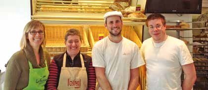 (De g. à d.) Katty Martin, Guylaine une ses vendeuses, son gendre et boulanger Vincent, et Guillaume, pâtissier.