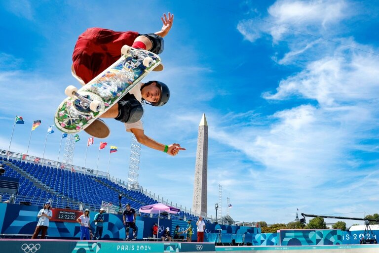 "Planche à roulettes" plutôt que "skateboard" et "figure" pour "trick": en proposant des termes français, les Jeux olympiques offrent une tribune à la langue de Molière, même si l'anglais reste hégémonique.