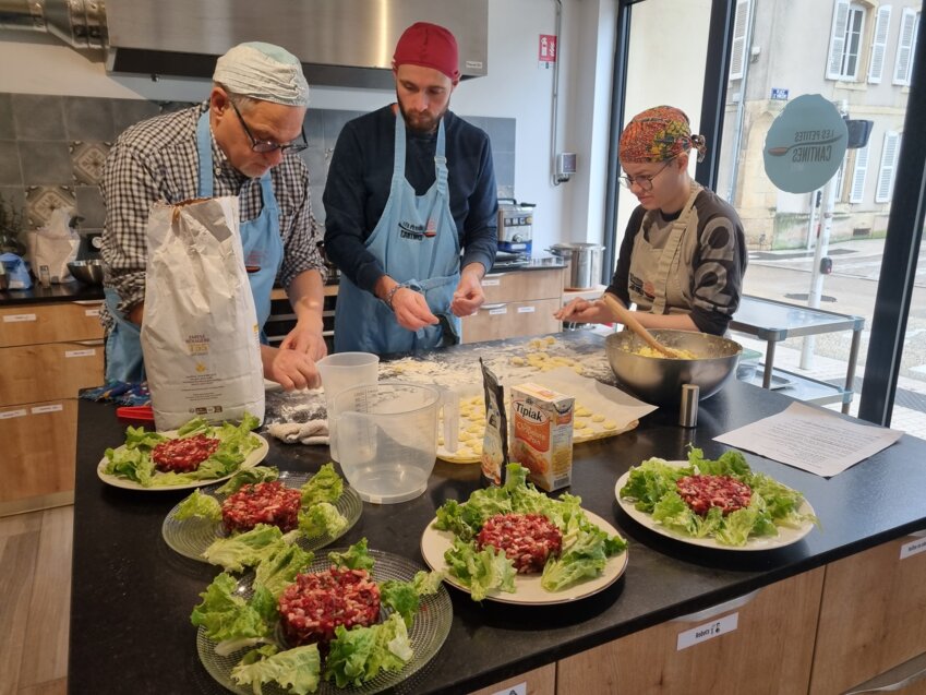 La contribution pour le repas et l’adhésion sont à prix libres. Chacun contribue au financement du lieu selon ses moyens. Le fonctionnement de la cantine est 100 % autofinancé par ces contributions. Ce jour-là, c’est menu italien au programme, avec l’incontournable tiramisu au final. Comme les autres midis de la semaine, femmes et hommes poussent la porte, sondent l’atmosphère, s’assoient. Un peu de réserve au début qui se dissipe bien vite au gré d’un sourire, d’un bon mot. L’ambiance est vite chaleureuse et empreinte d’une grande simplicité. Les Petites Cantines permettent en fait à toutes les formules et s’adressent à un public large. Pour déguster ou cuisiner, il suffit de s’inscrire. Si les têtes changent au jour le jour, même si certains ont déjà prix leurs habitudes régulières, il est un trait commun : tout est orchestré par un maître de maison. Il saura vous régaler et distiller quelques astuces et recettes. À noter, les mercredis après-midi, des ateliers cuisine, et les vendredis soir, pour des soirées thématiques. Les Petites Cantines de Metz sont ainsi le cocon idéal, intergénérationnel. Titiller les papilles, émoustiller les palais : ici on sait faire. Enfin, le coup de main à la plonge fait partie du concept : 100 % participatif, on vous disait. On laissera conclure par un habitué des lieux, Joachim, résidant Marly : «Il y a là une excellente ambiance, très solidaire. Et le tout avec une bonne cuisine, que demander de mieux ?» Voilà, vous savez tout ou presque. Il ne vous reste plus qu’à pousser la porte, pour le déjeuner, le brunch ou le dîner (le vendredi). D’autres Petites Cantines sont prévues en ouverture en 2024 à Aix-en-Provence, Antony, Bordeaux, Bruz, Les Lilas, Montpellier, Pau, Roanne, Sartourville, Villefranche-sur-Saône. On peut retrouver toute l’actualité des Petites Cantines de Metz sur les réseaux sociaux Facebook et Instagram. Pour aller plus loin : https://metz.lespetitescantines.org/ et https://www.lespetitescantines.org/.